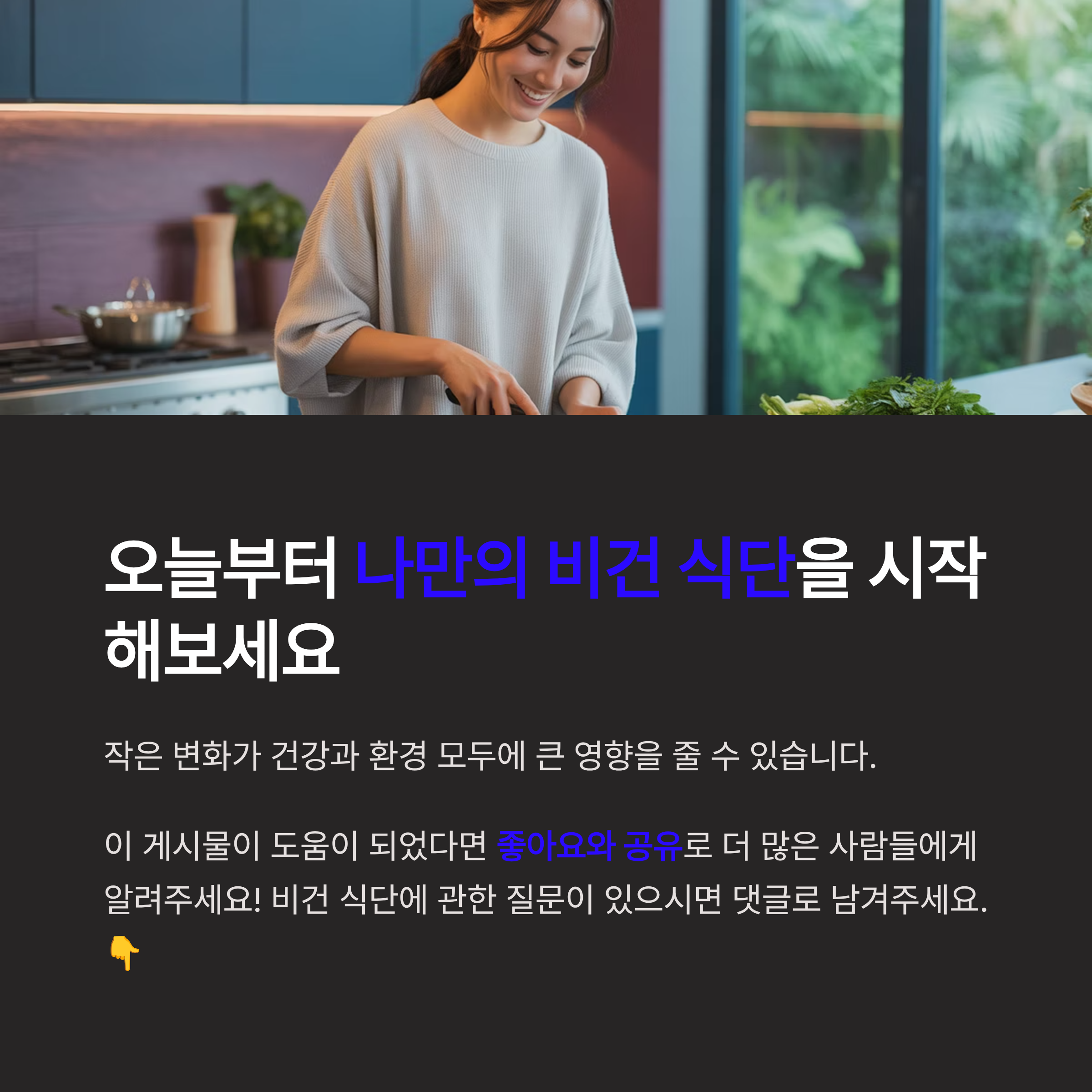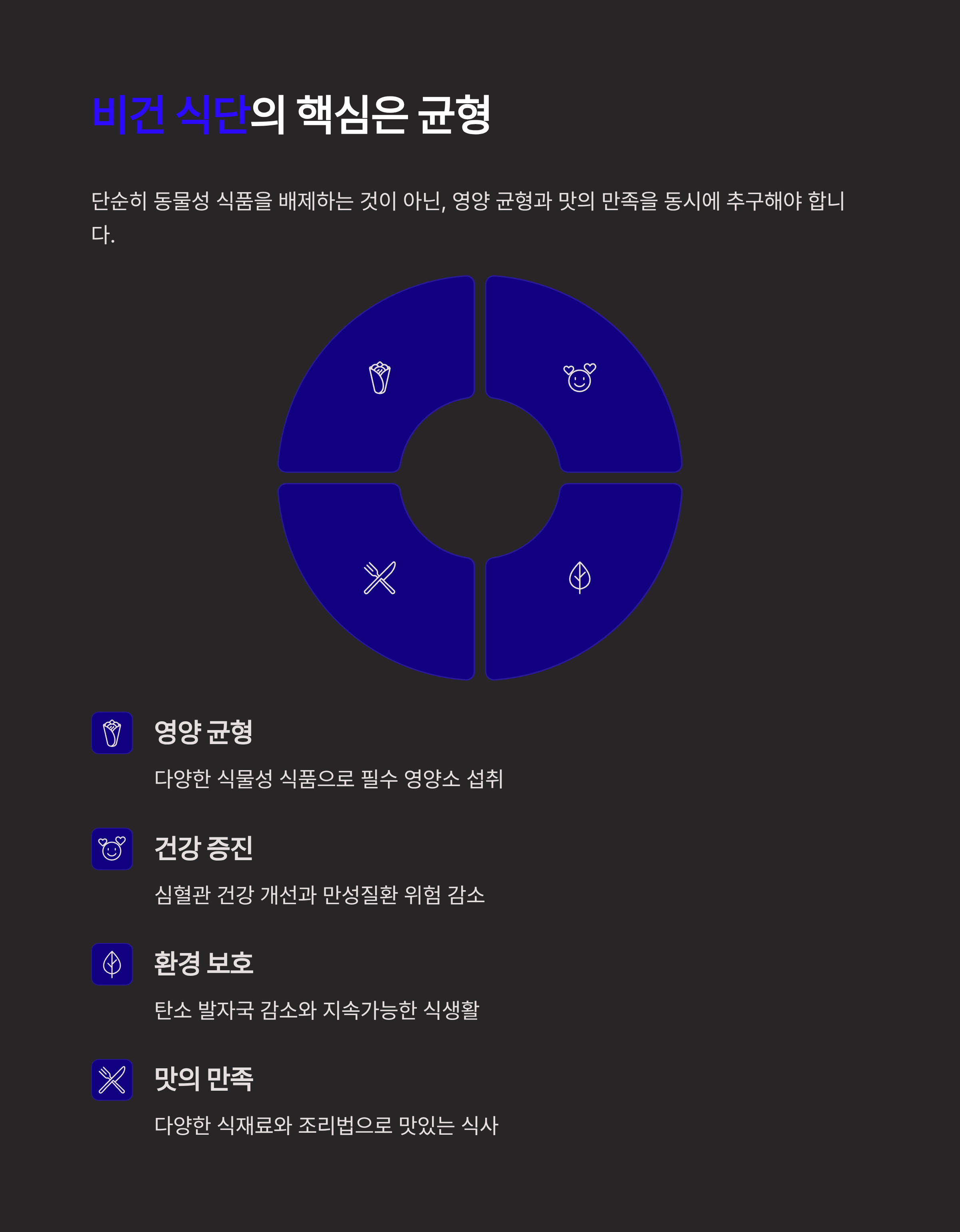 결론적으로 비건 식단을 건강하게 유지하려면 영양소의 균형을 고려한 식단 설계가 필수입니다. 올바른 재료 선택과 조리법, 보충제 활용을 통해 맛과 건강을 모두 잡을 수 있습니다. 오늘부터 나만의 비건 식단 플랜을 세워 건강한 변화를 시작해 보세요. 작은 실천이 큰 변화를 만들어낼 수 있습니다.
